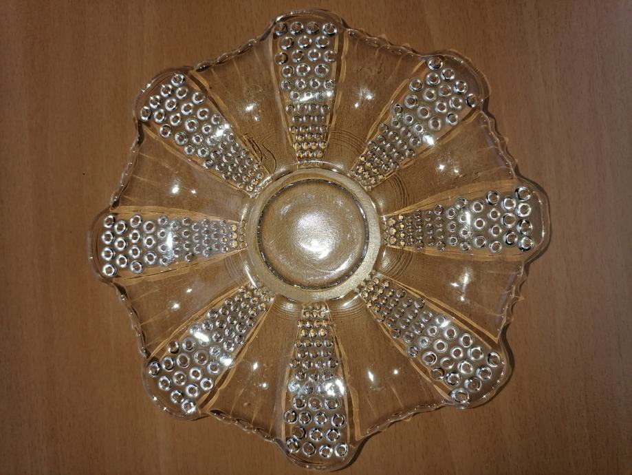 Iz starega,masivnega,močnega,rezanega,Jugoslovanskega stekla.Lepo vzorčasti. Namenjeni,za raznovrstna peciva,slaščice.. Brezhibni.Kot novi. Premer 17,5cm. Tel.064 222 880,najbolje osebni prevzem.