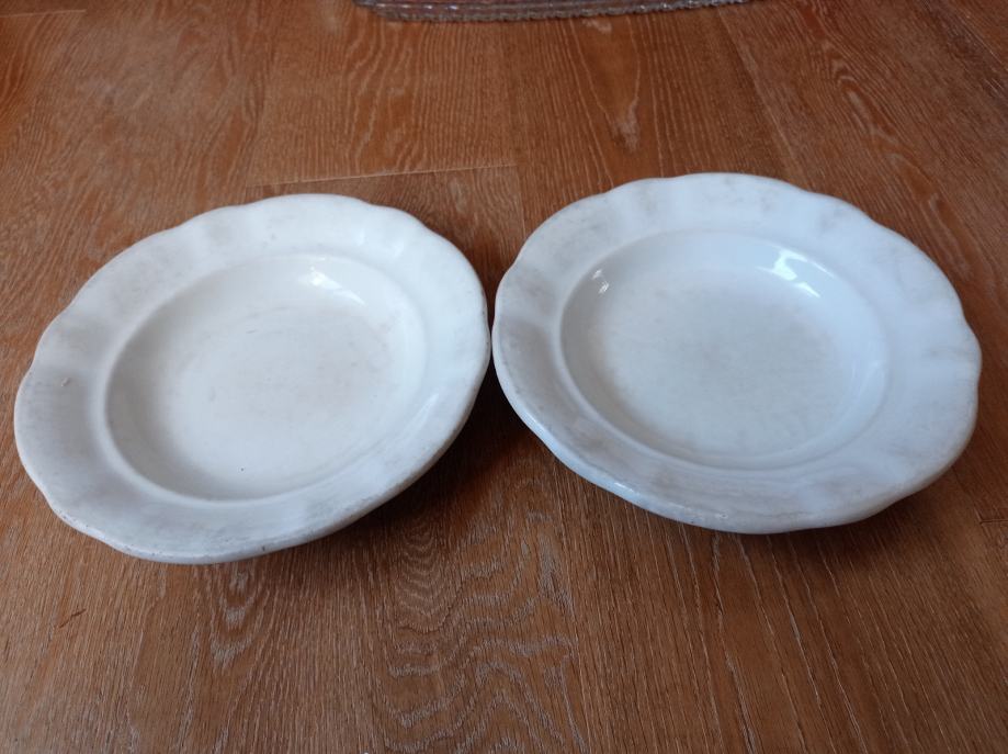 Prodam 2 starinska krožnika za juho. Krožnika sta narejena iz debelejšega porcelana. Velikost 23 cm . Čehoslovaška iz leta 1930 , Chodau. Cena je za 2 komada.