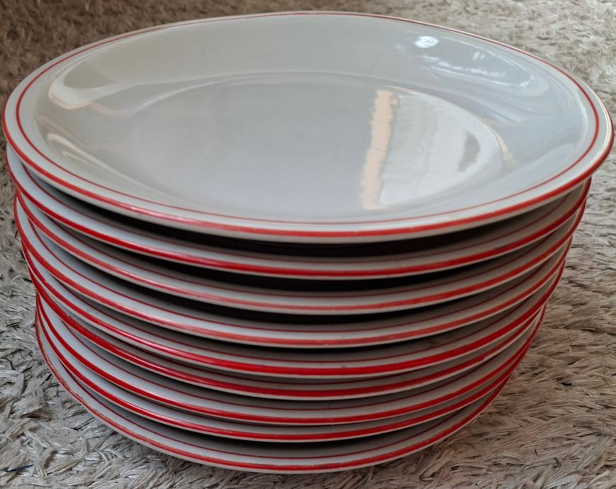 9 kosov plitvih krožnikov. Stari, celi, nepoškodovani. Premer 23 cm. Retro. Porcelan Boris KIdrič, Jugoslavija.
