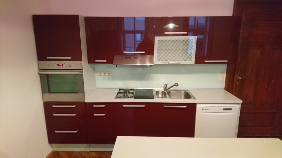 Linijska kuhinja z 1x visokim elementom, cena 400€ (vključuje umivalnik in pipo, napa po dogovoru, pečice ne prodajamo)