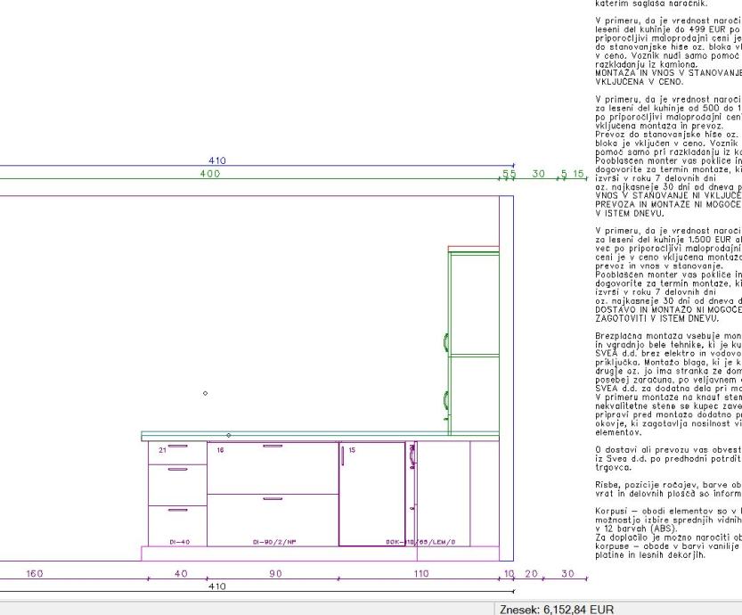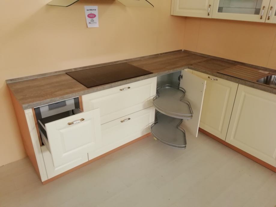 Kuhijski sestav CLIVIA dimezije D 280 cm X L 245 cm. Blum vodila mehko zapiranje leseni del. 1800 eur