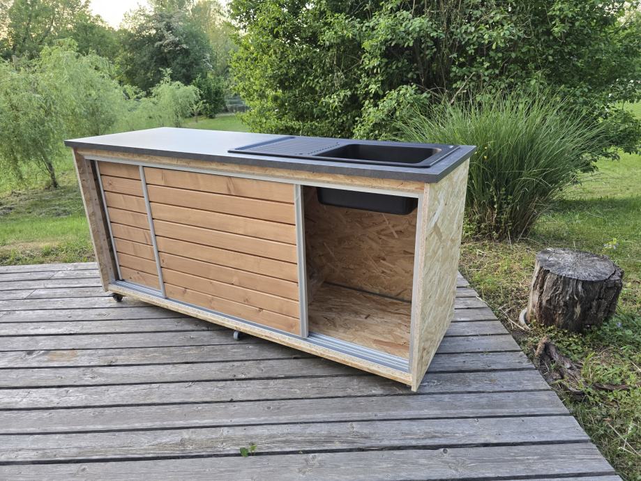 Prodam novo letno kuhinjo atraktivnega izgleda. Idealna za pod nadstrešek, brunarico, mobilno hišo, vrt...Kuhinjo se lahko opremi z opremo po želji (police, predali, pomivalnim koritom, štedilnikom, žarom...) 041 286 874