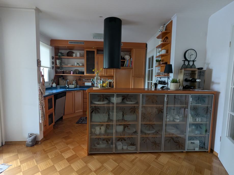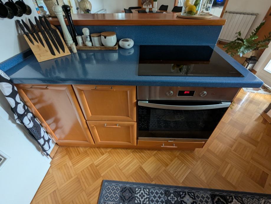 Prodam zelo dobro ohranjeno kuhinjo znamke Lipa Ajdovščina. Kuhinja je izdelana delno iz masivne parjene bukovine (marivni so okvirji na vratih in sprednji deli predalov), delno iz mdf plošč.