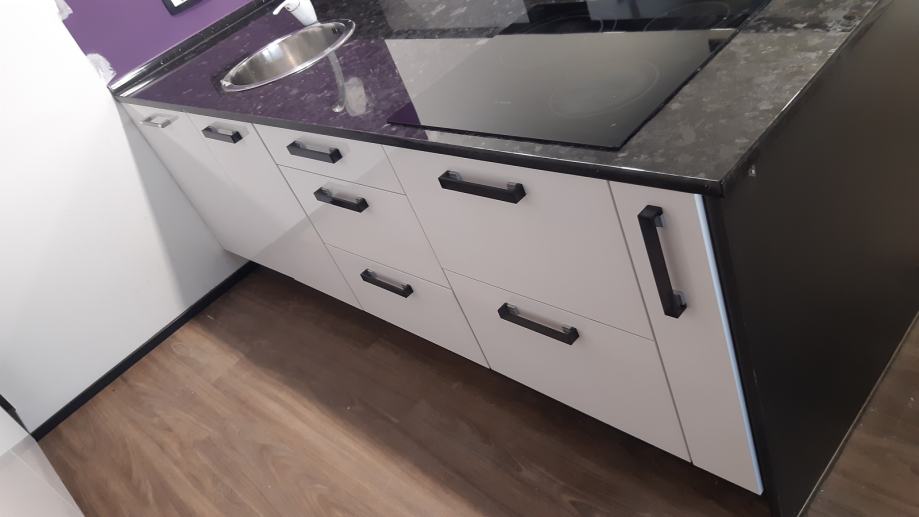 Prodam kuhinjo nobilia staro 5 let, z aparati steklokeramici štedilnik bosch, pečica bosch, pomivalni stroj bosch, BREZ PULTA IN HLADILNIKA. Dimenzije Otok je 1,1m x 2,4m kuhinski blok je 2,7m x 0,6m, višina 2,05m.