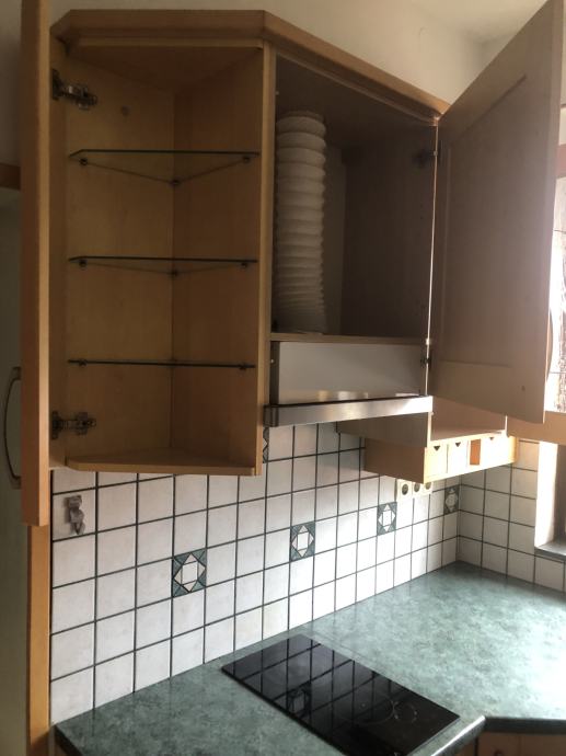 Viseče omarice z vitrino 30 cm, omarica z napo, omarica 40 cm, polički.