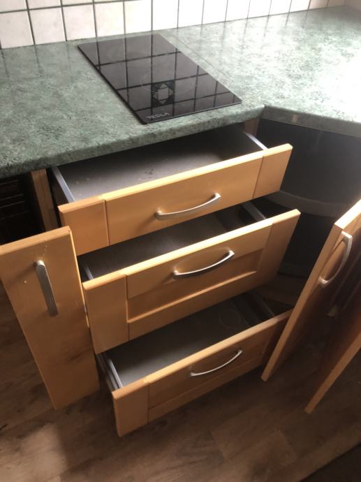 Kuhinja 164cm x 180 cm pulta, viseče omarice in omara za pečico.