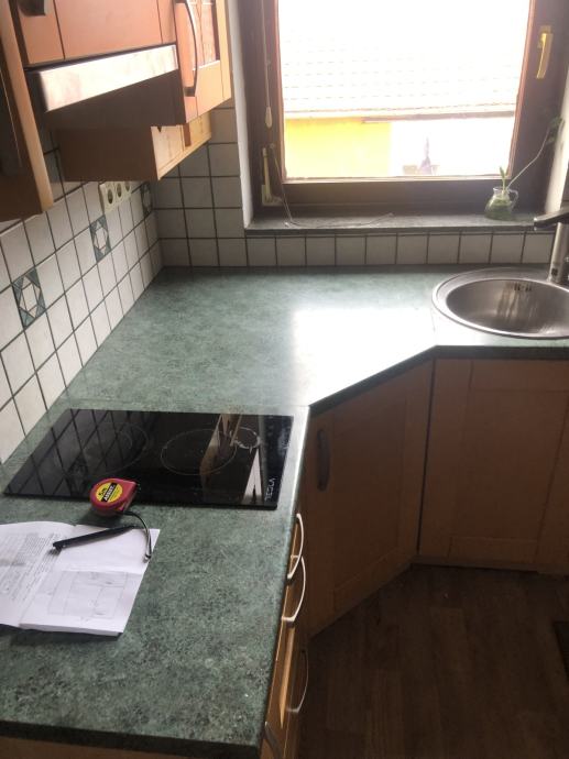 Pult 164 cm x 180 cm, vključno s koritom in pečico.