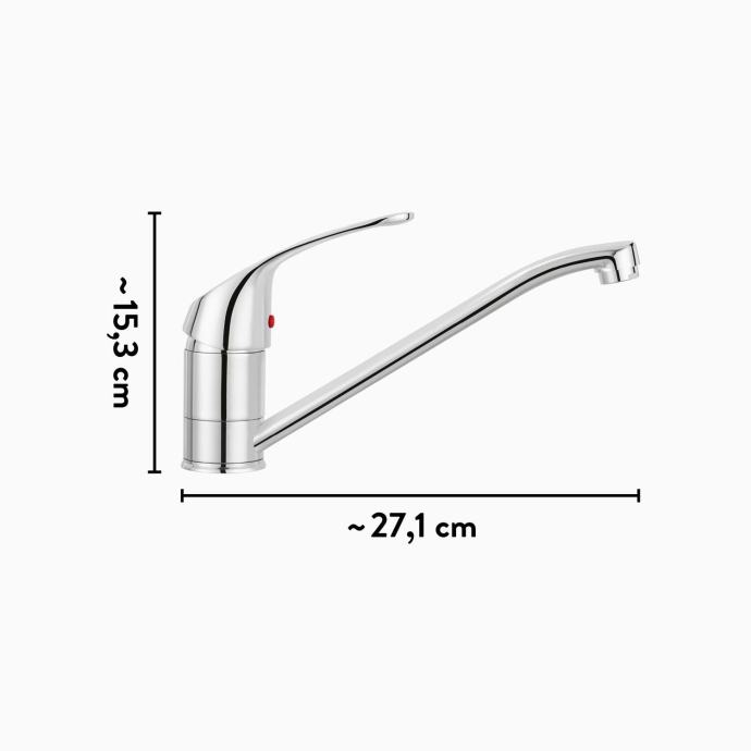 Majhna, a priročna: V kuhinjsko armaturo baliv KI-1180 se boste zaljubili na prvi pogled. Njen eleganten in brezčasen dizajn se harmonično vklopi v vašo kuhinjo. Ročica armature za kuhinjski umivalnik ima praktičen jeziček, ki vam olajša uporabo, ko so vaše roke mokre. Čiščenje pomivalnega korita ali udobno pomivanje posode je z vrtljivo armaturo zelo preprosto. Izliv lahko zavrtite za 130°.Deluje, kot bi mignilVgrajeno armaturo lahko začnete takoj uporabljati, saj smo vanjo že vgradili kakovostno kartušo s keramičnimi tesnilnimi podložkami. Mehek vodni curek, ki izhaja iz mešalne šobe, poskrbi za dodatno ugodje. In ker želite kuhinjo, ki jo boste lahko dolgo uporabljali, je armatura izdelana iz trdne medenine. Površina v barvi krom odlično dopolnjuje eleganten dizajn. In da vam med nameščanjem ni treba po nepotrebnem izgubljati časa, smo v armaturo vključili ves material, ki ga potrebujete za vgradnjo.baliv - izdelano za življenjeKuhinja je duša vašega doma - tu ne samo kuhate in jeste, temveč se tudi smejete, slavite, prepirate in pobotate. Skratka - tukaj se odvija vaše življenje. Zato nam je pomembno, da se tu počutite še posebej prijetno. Naše kuhinjske armature baliv vas spremljajo skozi razburkan vsakdan. Velik pomen pripisujemo dejstvu, da so v naših armaturah združeni kakovost, dizajn in funkcija, tako da dolgo časa opravljajo svoje naloge. Pri proizvodnji uporabljamo seveda le kakovostne materiale. Ker menimo, da armatura ne sme biti samo dobra, ampak mora biti tudi trpežna in trajna. Poleg tega vsi deli naše armature, ki pridejo v stik s pitno vodo, izpolnjujejo visoke higienske standarde veljavne uredbe o pitni vodi Zvezne agencije za okolje (UBA) in Nemškega združenja za plin in vodo (DVGW). Komplet vključujeKuhinjska armatura baliv KI-1180Priključne ceviMaterial za pritrditev