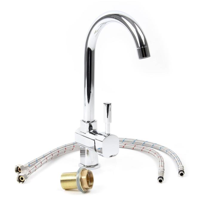 Trdna konstrukcija je enostavna za montažo in primerna za vsako standardno kuhinjo. Zahvaljujoč dvema gibljivima cevema (40 cm) z navojem 16,41 mm (G3/8”) za priključek tople in hladne vode lahko pipo priključite na vse standardne pomivalne armature. Kakovostna, trpežna tesnila preprečujejo puščanje na priključkih. Pipa Naturewater je vzdržljiv izdelek, enostaven za uporabo in odlična izbira za vsako kuhinjo.