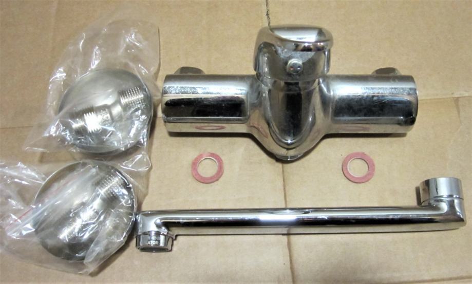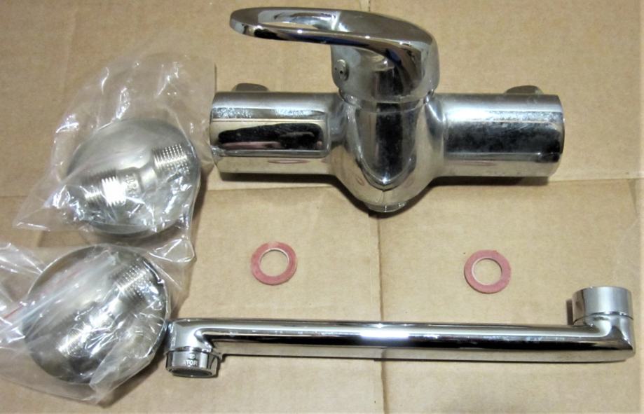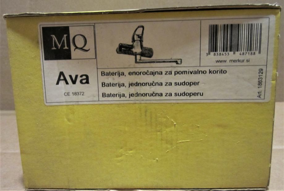 Prodam pol leta rabljeno kuhinjsko pipo. Enoročna armatura AVA MQ, za pomivalno korito, stenska, izliv 200 mm v originalni embalaži.