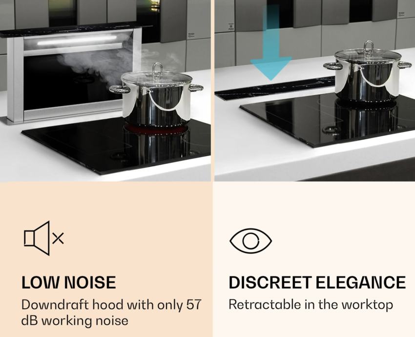 Prodam Klarstein Royal flush Eco dvižno-potopno kuhinjsko napo. Zaradi prerazporeditve prostora je žal ne moremo uporabiti. Enako napo smo imeli že v prejšnjem stanovanju in deluje nadpovprečno odlično in je zelo lepa, zato smo kupili enako, ki pa nam sedaj stoji.