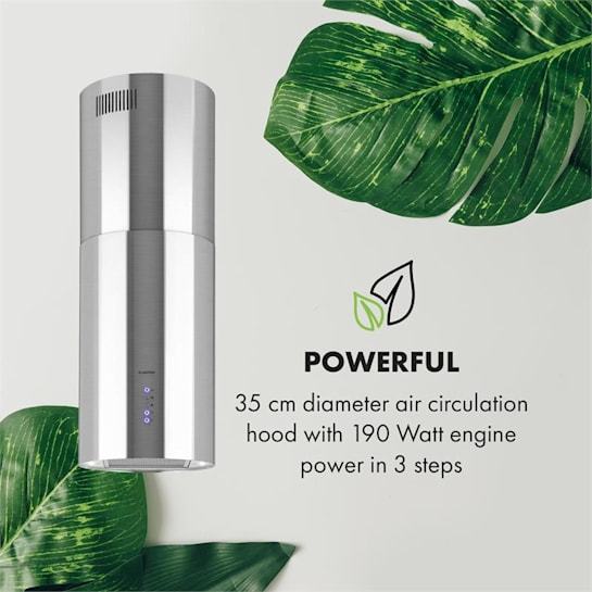 Beretta, otočna napa, Ø35cm, recirkulacija, 650m³/h, LED, nerjaveče jeklo