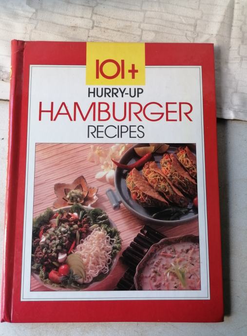 Na voljo je odlično ohranjena (nova) knjiga 101+HURRY-UP HAMBURGER RECIPES v angleškem jeziku, trda vezava.