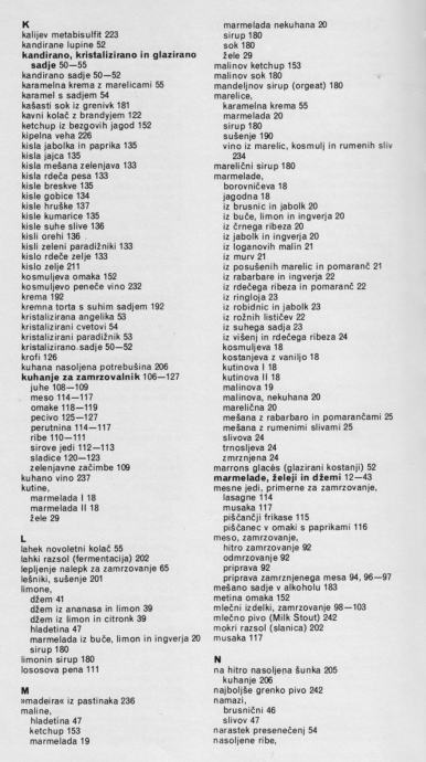 Sicer pa bomo v knjigi našli odgovor, da je preprost in najbolj zanesljiv odgovor na vprašanje, zakaj sploh vlagati, je: vlagajmo po recepturi. Kratke, jedrnate in predvsem preproste ter razumljive načine boste našli v tej knjigi, ki vam ponuja tudi zlata pravila vkuhavanja. Kako pripraviti džeme in marmelade, sladke dobrote iz sanja, sokove, sirupe in želeje, likerje in sadje v alkoholu, kompote, kisano zelenjavo, zelenjavo v kisu, kako posušiti in shranjevati, pripraviti sadno zeliščni kis, kako uporabiti zelišča iz domačega vrta tudi z nasveti babice ... Prav tako pa se boste seznanili z ostalim shranjevanjem in zamrzovanjem živil.