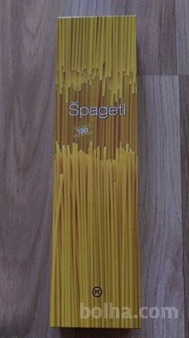 Knjiga je v obliki škatle špagetov. Več kot 130 receptov, kako pripraviti špagete na drugačen način.