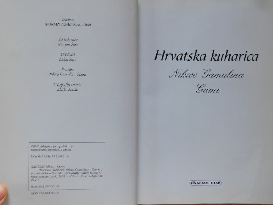 Hrvatska kuharica. Avtor Gamulin Nikica. Izdana v Splitu 2002. Hrvaški jezik, fotografije v barvah. Poštnina je vaša.