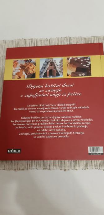 Knjiga receptor Dr. Oetker - BOŽIČNO PECIVO, popolnoma nova,trda vezava z zlato naslovnico. Knjiga vsebuje več kot 50 krasnih receptov z fotografijami primernih za adventni in božični čas, ali sploh, kot so kolači, torte, pecivo, piškoti, drobno pecivo, pralineji ....