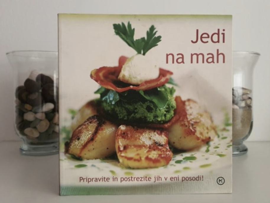 Dobra kuharica z naslovom - Jedi na mah. Veliko zanimivih, malo drugačnih receptov. Doblhema za darilo, a imamo že en izvod doma. Nerabljena, brezhibna kot nova.
