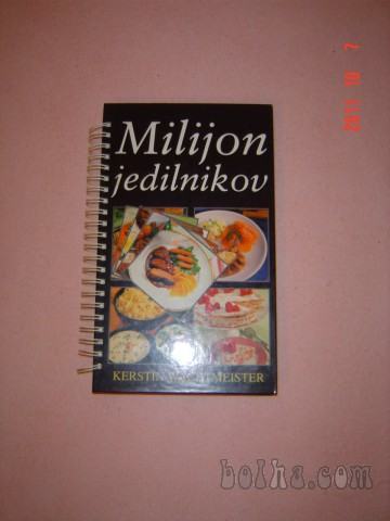 Knjigo Milijon jedilnikov, prodam. Knjiga je špiralno vezana. Sestavlja jo sto jedilnikov za juhe, glavno jed in poobedek. Uporablja se jo kot sistem kartic, da si sestavite svoj meni. Je nerabljena.