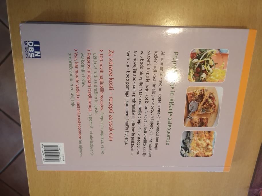 Za zdrave kosti - recepti za vsak dan. 100 novih najljubših receptov. Preprosta priprava, veliko užitkov! Tudi za družino in goste. Preprost program razgibavanja in pomoč pri obvladovanju vsakdanjih težav. Vse, kar morate vedeti o nastanku osteoporoze ter njenem preprečevanju in zdravljenju.