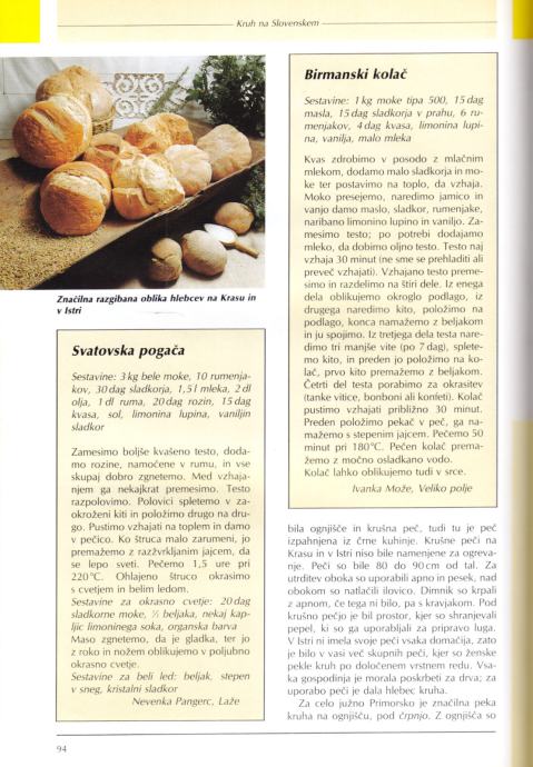 in pozabljenih, nekatere opuščamo in jih le s težavo in po spominu ohranjamo, da ne potonejo v pozabo in povsem izginejo iz izročila. Kruh živi z ljudstvom, in naša dolžnost je, da poskrbimo za smotrn prenos njegove oblike, okusa in koristnosti v zdajšnji čas. Tako bo kultura priprave kruha od včeraj, za danes in jutri dobila svojo dušo. Tako bo kruh živel z narodom.