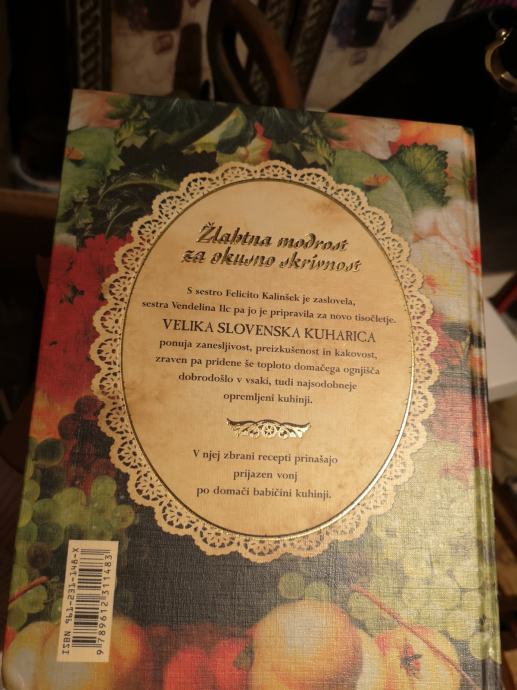 Velika slovenska kuharica je prvič izšla leta 1868, danes pa je na voljo njena 27 izdaja, prenovljena in dopolnjena. Izbor jedilnikov in receptov je razširjen, vsebuje tako preproste kot svečane jedi. Knjiga je popestrena s priročnimi tabelami kot so pregled ustreznih vin za k hrani, uporaba začimb in dišav, čas kuhanja v ekonomu, mikrovalovno odmrzovanje in kuhanje ter preglednica o zamrzovanju... Poleg tega vam kuharica vam pomaga mimogrede osvojiti pravila mizne kulture: kar je prijazno očem, je spodbudno za tek in prijetno druženje.
