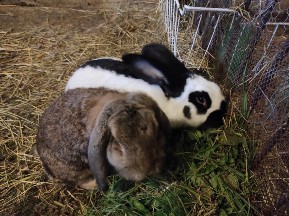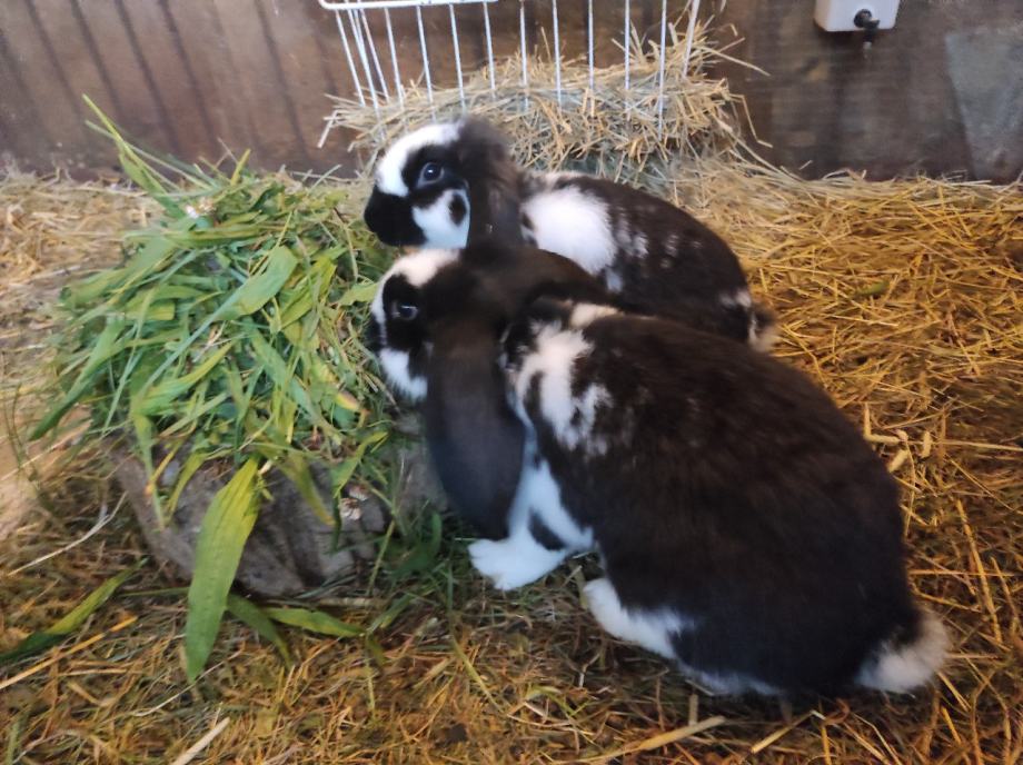 Prodam križance orjaških pasem lisec in ovnač, samice in samce, stari so 4,5 mesece in krmiljeni s travo, senom in ječmenom. Starša tehtata 6-7 kg.