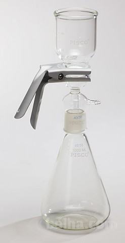 Sestavljena iz: zgoraj stekleni valj z graduiranim volumnom do 250 ml, pod njim pride steklena frita v okroglem PTEF nosilcu na katerega se da membranski filter dimenzije 47 mm ali 50 mm ter se ga namesti na sredinjski del kjer se z eluksirano aluminijasto prižemo očvrsti zornji valj,frito ter srednji vakuumski del katerega nasadimo na steklenico.