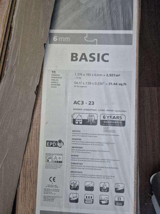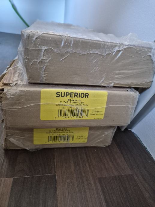 Prodam 3 pakete laminata. V vsakem paketu je 11 plošč. En paket pokrije 2,9m2. Prodamo saj je ostal višek. Paketi so še neodprti.
