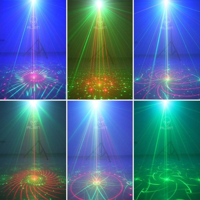 " ALIEN III" mini disco laserski projektor RGB USB LED UV-128 motivov