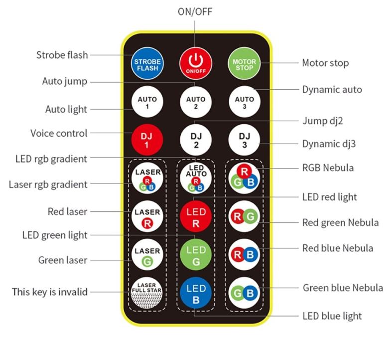 -funkcija daljinskega upravljalnika :prilagajanje laserja,LED barve,časovna funkcija