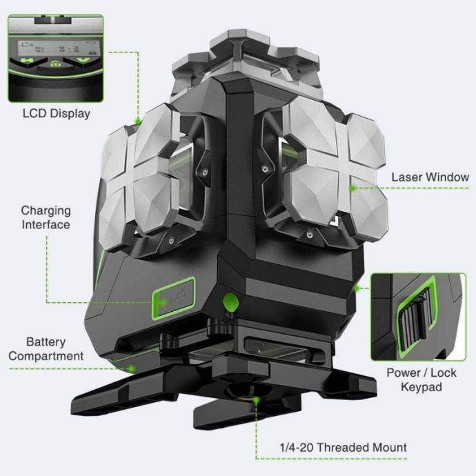● Projekcija: 16 zelenih laserskih linij