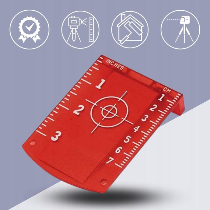 Laserska plošča bistveno izboljša natančnost, točnost in preglednost meritev. Vse to tudi zaradi plošče, nameščene na zadnji strani, na kateri lahko vidimo laserski žarek v vseh pogojih. Natančnost rezultatov je ključni vidik pri različnih vrstah montaž in del, pri katerih se uporablja križni laser. Pri merjenju, montažnih stenskih plošč ali spuščenih stropov je nujna uporaba ciljnega ščita.