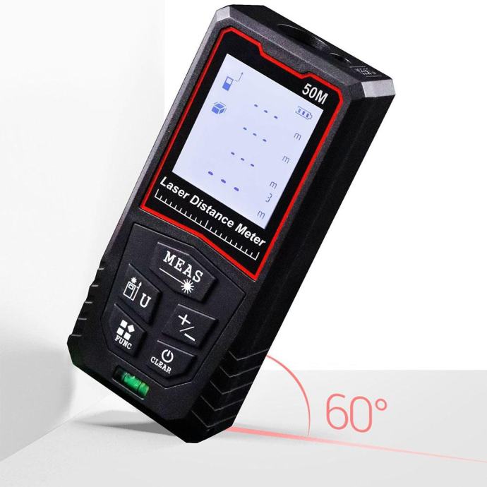 Večfunkcijski digitalni LCD laserski merilnik razdalje je odličen izdelek za vse, ki potrebujejo natančno in zanesljivo merjenje razdalj in drugih dimenzij. Ta merilnik lahko meri razdalje do 50 metrov in ima natančnost merjenja +/- 2 mm. Poleg tega ima merilnik različne funkcije, kot so merjenje razdalje, površine, volumna, neposredno in posredno merjenje, kot tudi funkcijo Pythagoras. Merilnik ima tudi LCD zaslon, ki prikazuje meritve in omogoča enostavno spremljanje procesa merjenja. Ta izlek je odlična izbira za gradbene delavce, arhitekte, inženirje in druge, ki potrebujejo natančno in zanesljivo merjenje razdalj in drugih dimenzij.