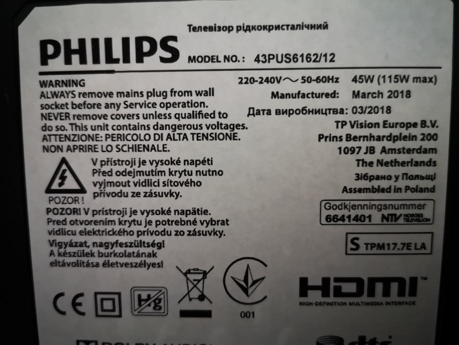 Prodam PHILIPS LCD TV 43PUS6162/12 z okvaro zaslona.