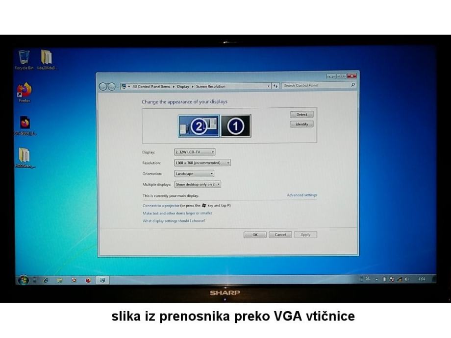 Zdaj so nastavljeni slovenski TV kanali preko sobne/strešne antene na 32. kanalu UHF (osrednja Slovenija: Gorenjska, Ljubljana, Dolenjska):