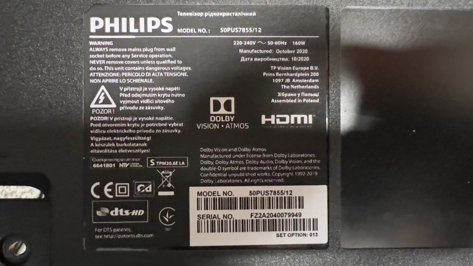 50PUS7855/12, FZ2, TPM20.6E, foto mapo,, 13546-PHIL, počen zaslon, Ambilight