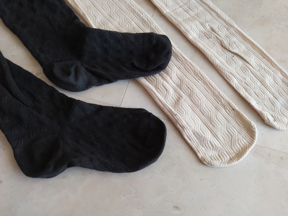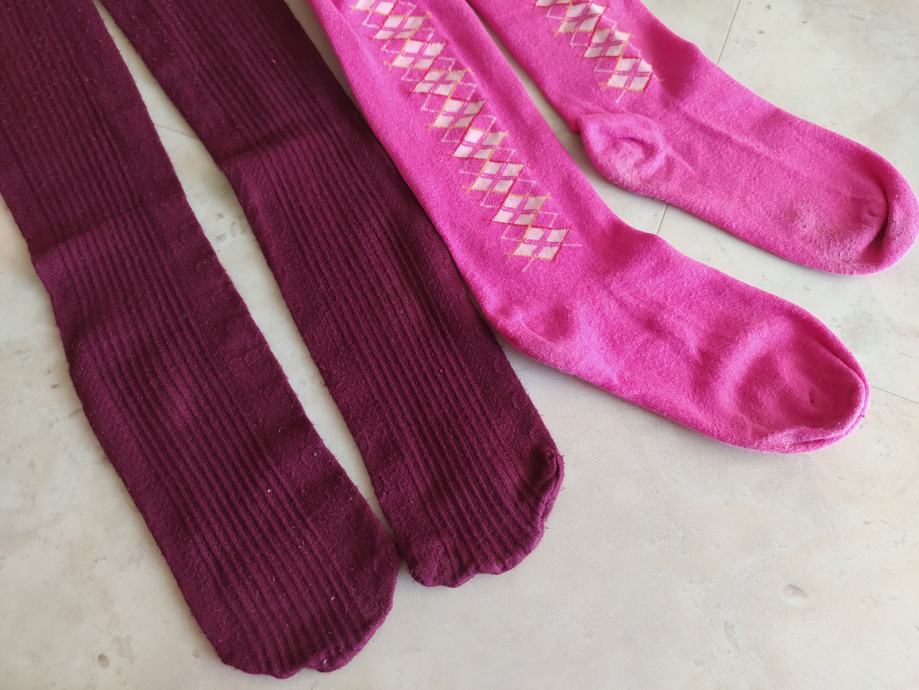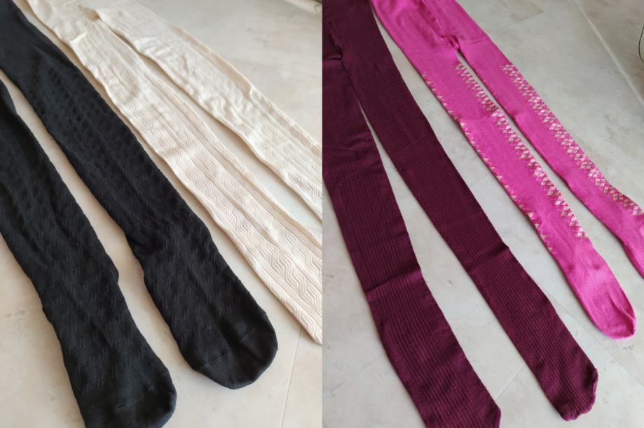 Črne, bež in vinsko rdeče žabe imajo reliefni vzorec, roza pa svetlo rožnat motiv. Črne in roza imajo našito stopalo. Velikost za 12-14 let.