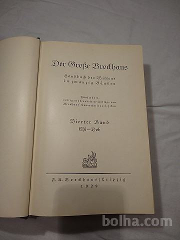 Der grosse Brockhaus, leksikon v nemščini, 4. knjiga CHI-DOB, iz leta 1929, dobro ohranjena.