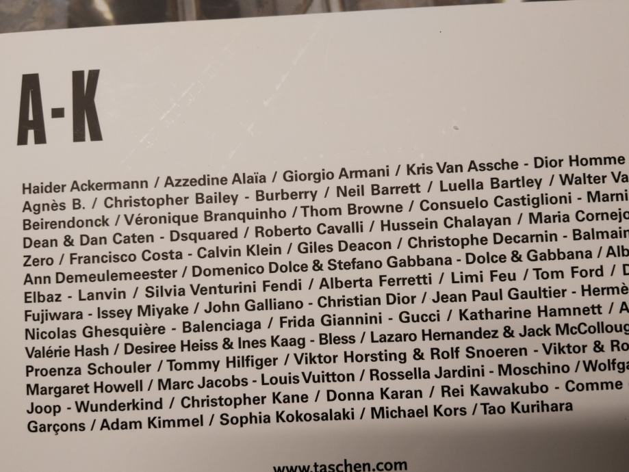 Knjigi sta v angleščini, nemščini in francoščini. V sliki ter besedi po abecednem vrstnem redu predstavljata 100 modnih oblikovalcev sodobnega časa. Med spodnjimi fotografijami so navedemi predstavljeni modni oblikovalci.