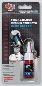 Lepilo za vijake MEDIUM BLUE MA243 MA Professional je lepilo s srednjo močjo lepljenja. Uporablja za lepljenje vijakov in preprečuje njihovo razrahljanje. Lepilo je odporno na tresljaje, pritisk in vse tekočine, ki se jih uporablja pri vozilih. Količina: 6 ml.