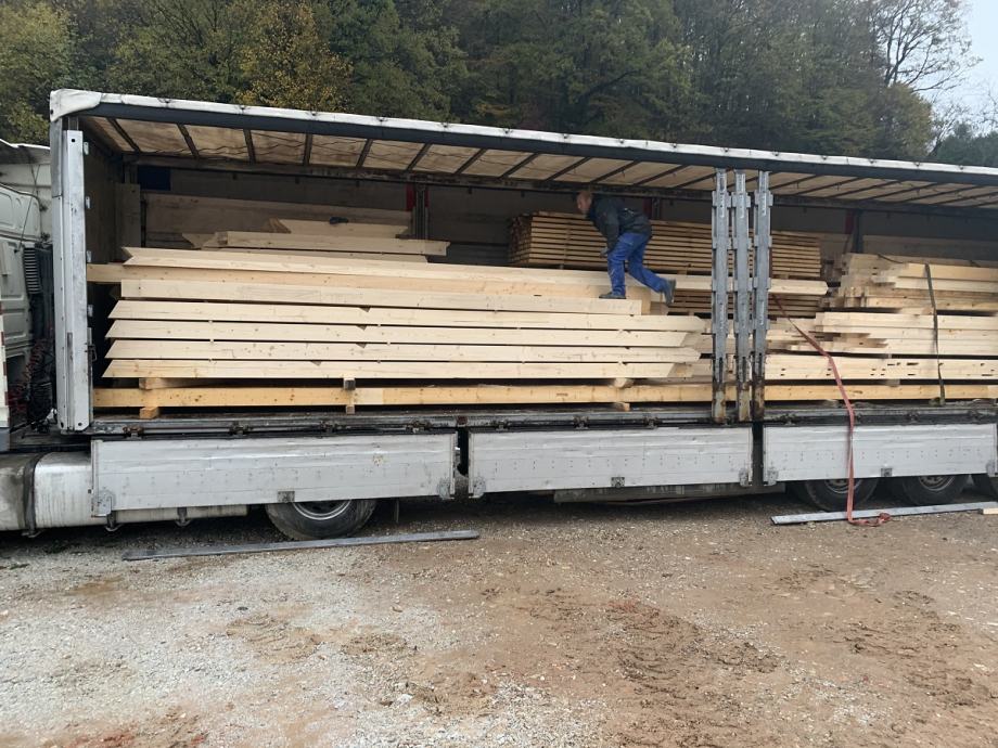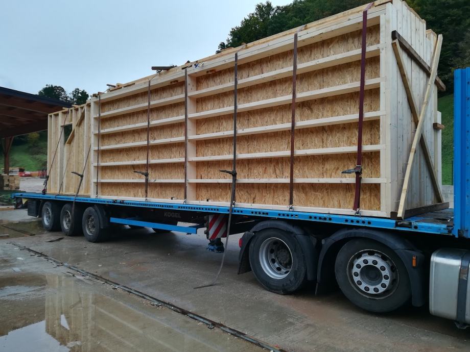 - "sestavljeni elementi" - je nadgradnja opcije "na paleti" - pri tej opciji vam vašo leseno konstrukcijo v naprej delno sestavimo (npr. stenski/ stropni/ strešni elementi pri montažnih hišah),