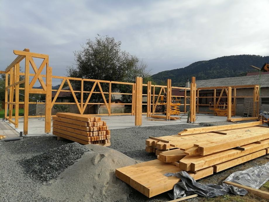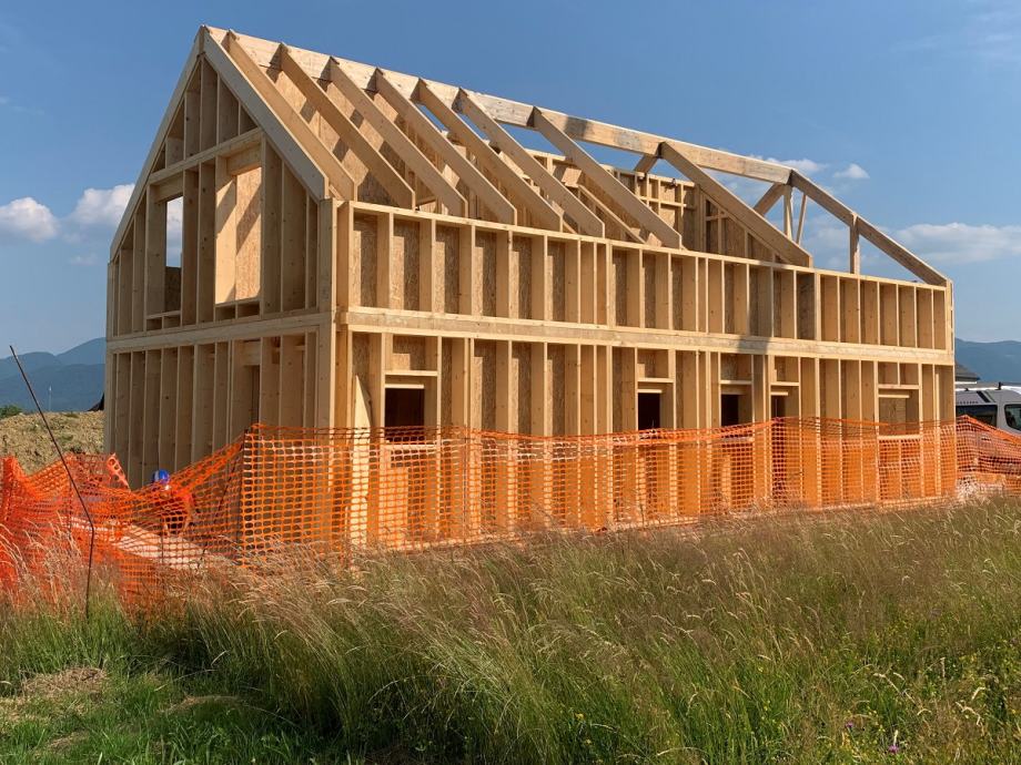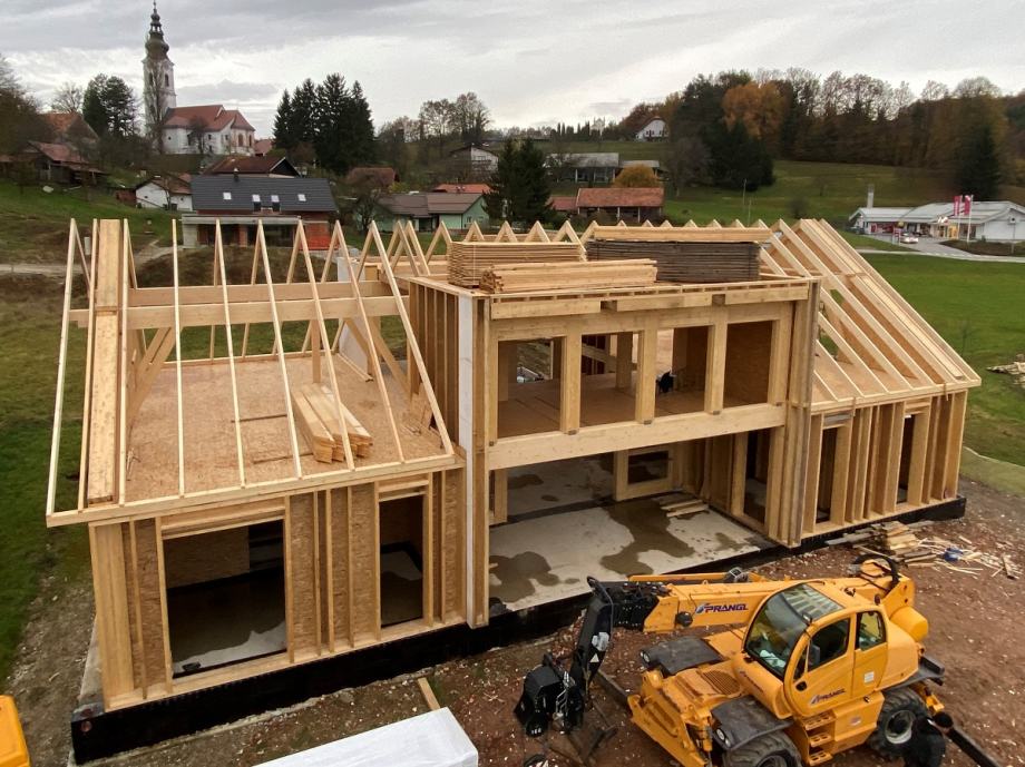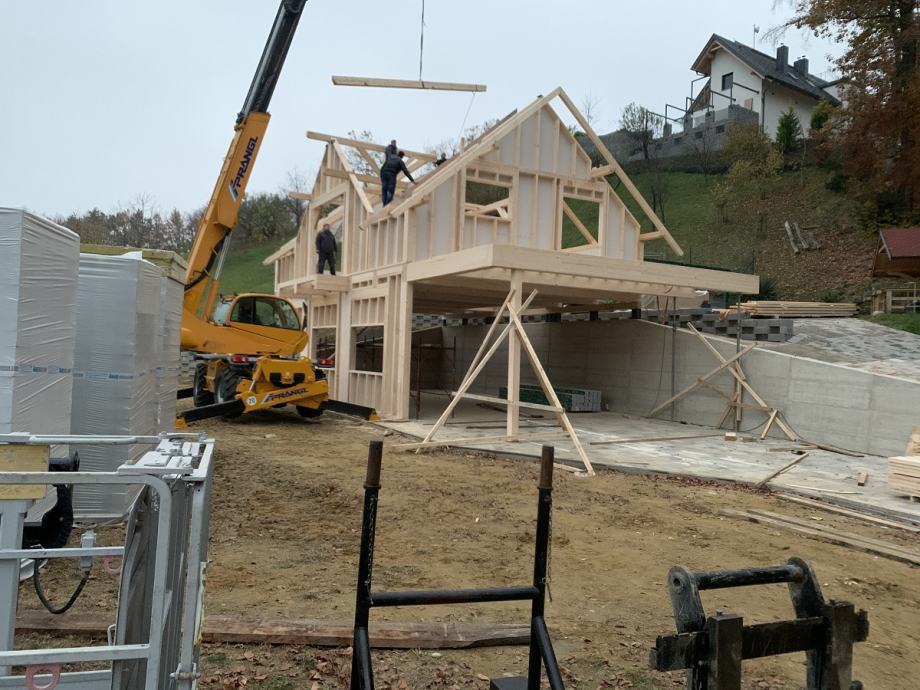 - "dobava z montažo" - je dodatna opcija, kjer vam pripravljeno konstrukcijo tudi zmontiramo na gradbišču, običajno zgolj "leseni del",