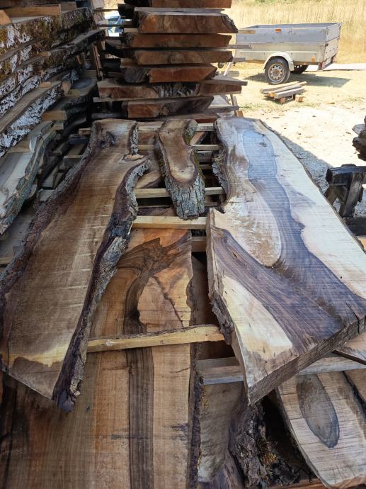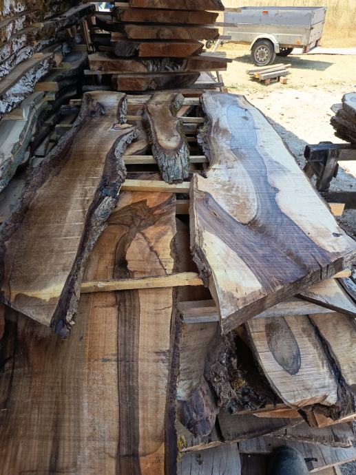 Prodam orehove deske 32mm in plohe debelin 60mm in 80mm, različnih širin do 60cm, dolžine do 3 metre, temni oreh, zelo lepi vzorci, cena 600e/m3 deske, 6cm plohi po 700, 8cm plohi po 800, oz po dogovoru..