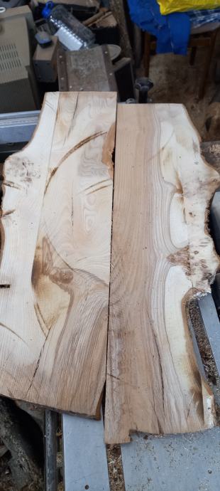 Brest les z razgibano rastjo iz enega hloda, 72x15-25x2,5 cm, 10 kosov, star 1 leto. Cena 8 euro za kos. Pri rezanju drv se mi je odprla ta lepa struktura, zato sem jo shranil, tudi za koga drugega.