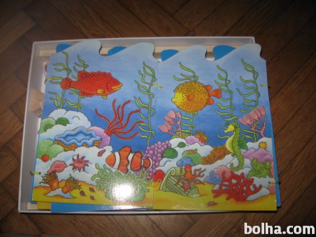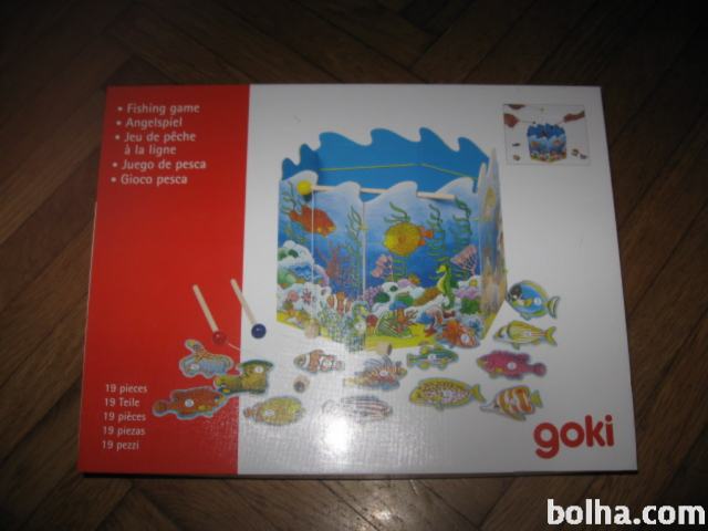 Prodam brezhibno ohranjeno in kompletno leseno igro UJEMI RIBO. Vsebuje 19 kosov: ribnik za ribe, 3x palice z magnetki in 15 komadov rib, ki jih livite s pomočjo magnetov.