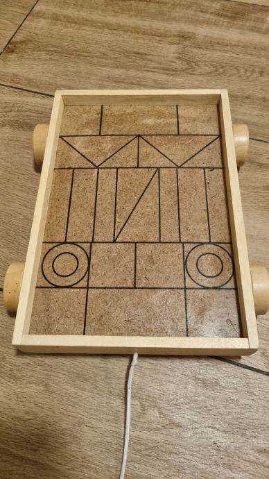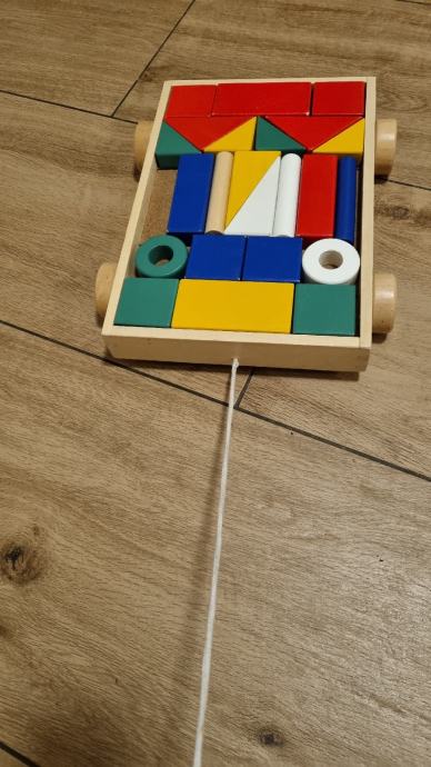 Lepo ohranjen leseni voziček. Poučna igrača.