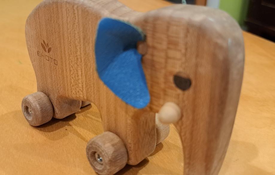 Prodam leseno igračo slonček, slon na kolesih, kolo EKOTO 1856