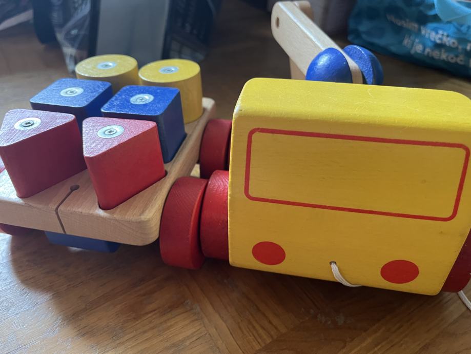 Lepo ohranjen ikea lesen žerjav z magnetnimi kockami.