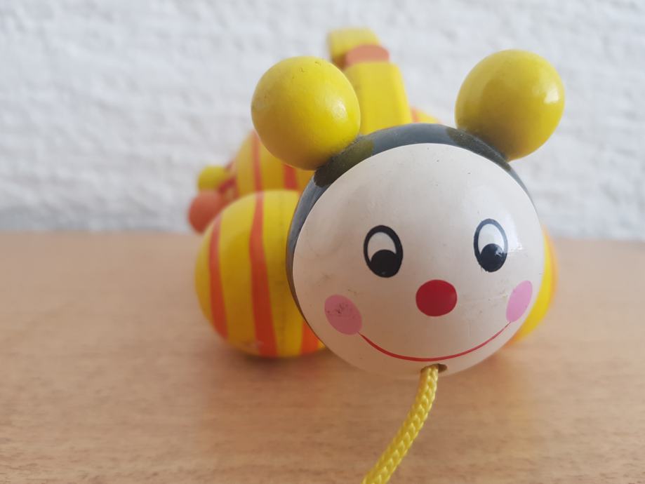 Prodam leseno čebelico na vrvici. Pomaga razvijati koordinacijo rok in oči. Velikost: 16 cm x 9 cm x 11 cm (d,v,š). Dolžina vrvice je približno 15 cm, priporočena starost od 12 mesecev.